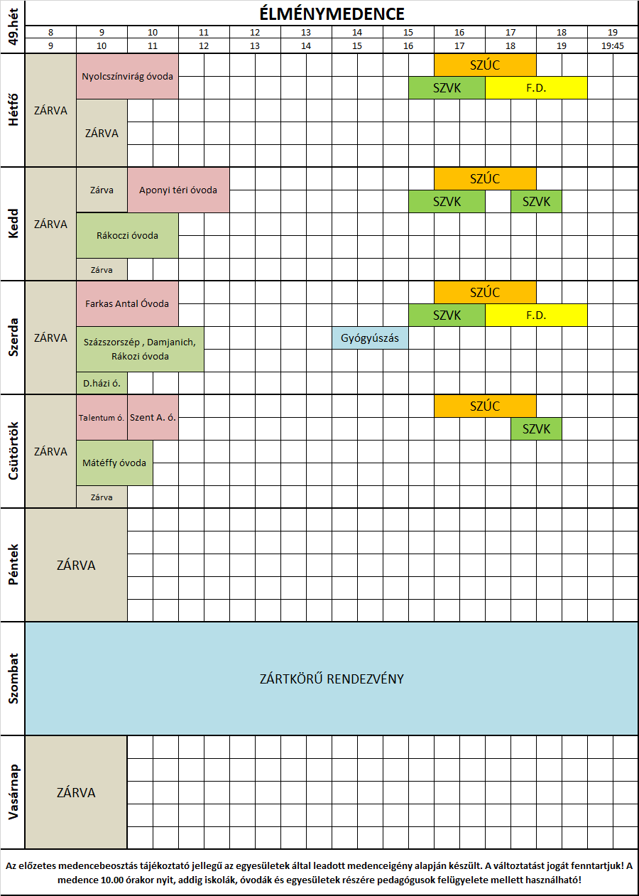 Az uszoda vendégei részére számos szórakozási- és kikapcsolódási lehetőség és szolgáltatás biztosított. Három hideg vizes úszómedencét, meleg termálvizes medencéket vehetnek igénybe, melyek kedvező élettani hatásuk miatt pihenésre és feltöltődésre kiválóan alkalmasak. A gyermekek is megtalálják a szórakozási lehetőségeiket, részükre pancsoló medencék, mini elefántos csúszdával vagy „gomba” csobogóval van kialakítva. Valamint minden korosztály számára élményt jelentő anakonda-, kamikáze- és gyermek-csúszda teszik színesebbé vendégeink kikapcsolódását. 2014-ben az uszoda új létesítménnyel bővül, átadásra került egy fedett 50 méteres medence ahol rendszeresen kerül megrendezésre hazai és nemzetközi vízilabda mérkőzések. 2015-ben a kikapcsolódás és feltöltődésre vágyó vendégek részére pedig egy új élmény- és wellness részleggel bővült az üdülőközpont.