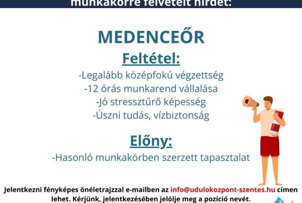 A Szentesi Sport- és Üdülőközpont csapatába a következő munkakörökre várjuk a jelentkezéseket: