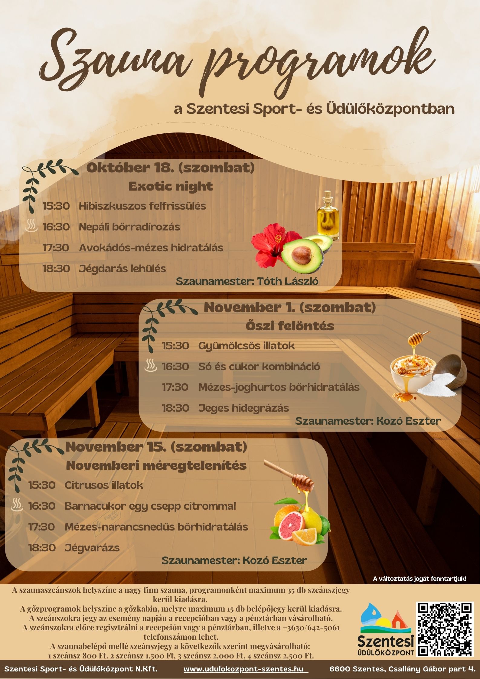A szaunaparkkal kapcsolatos információkról naprakészen Facebook oldalunkon tájékozódhat.